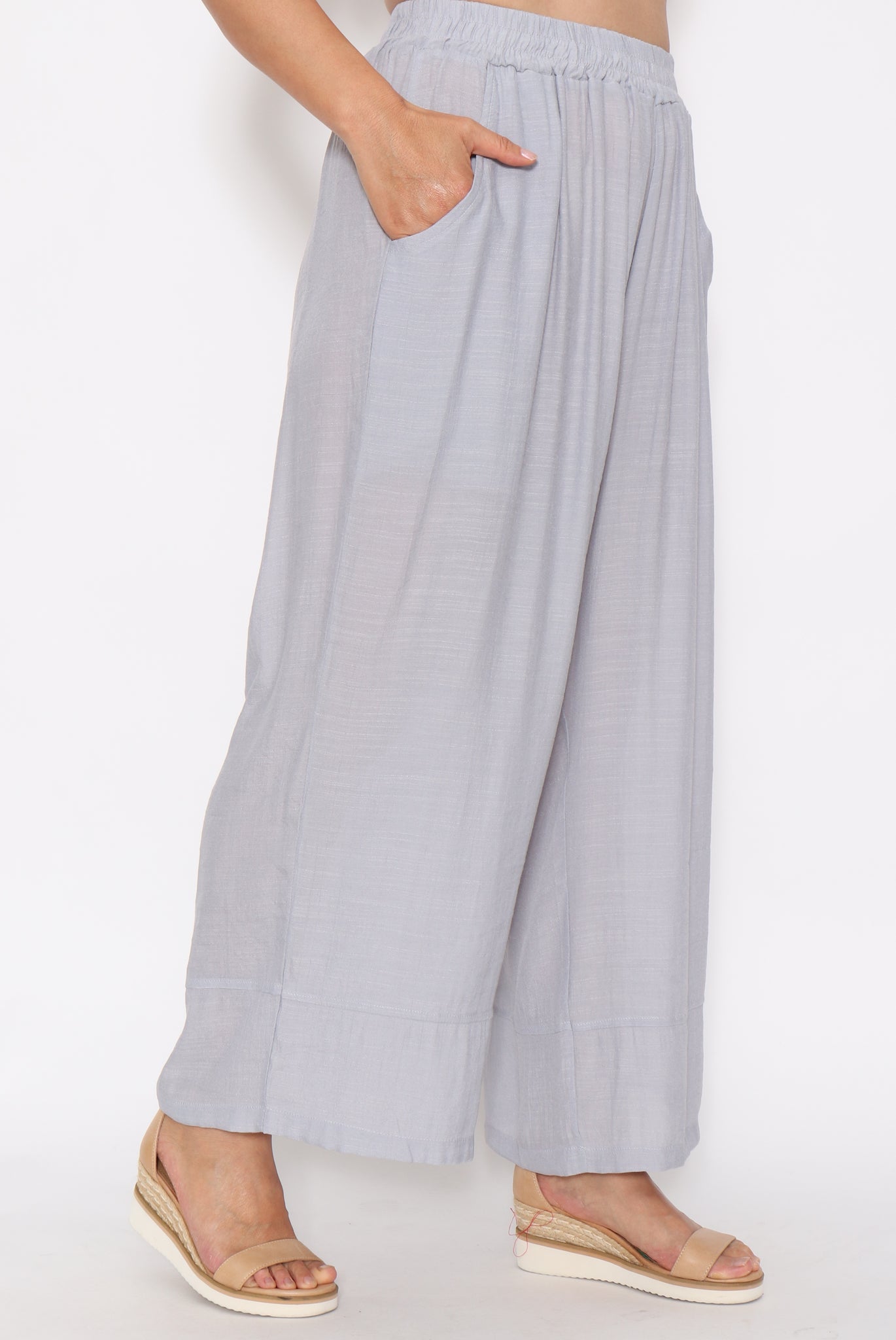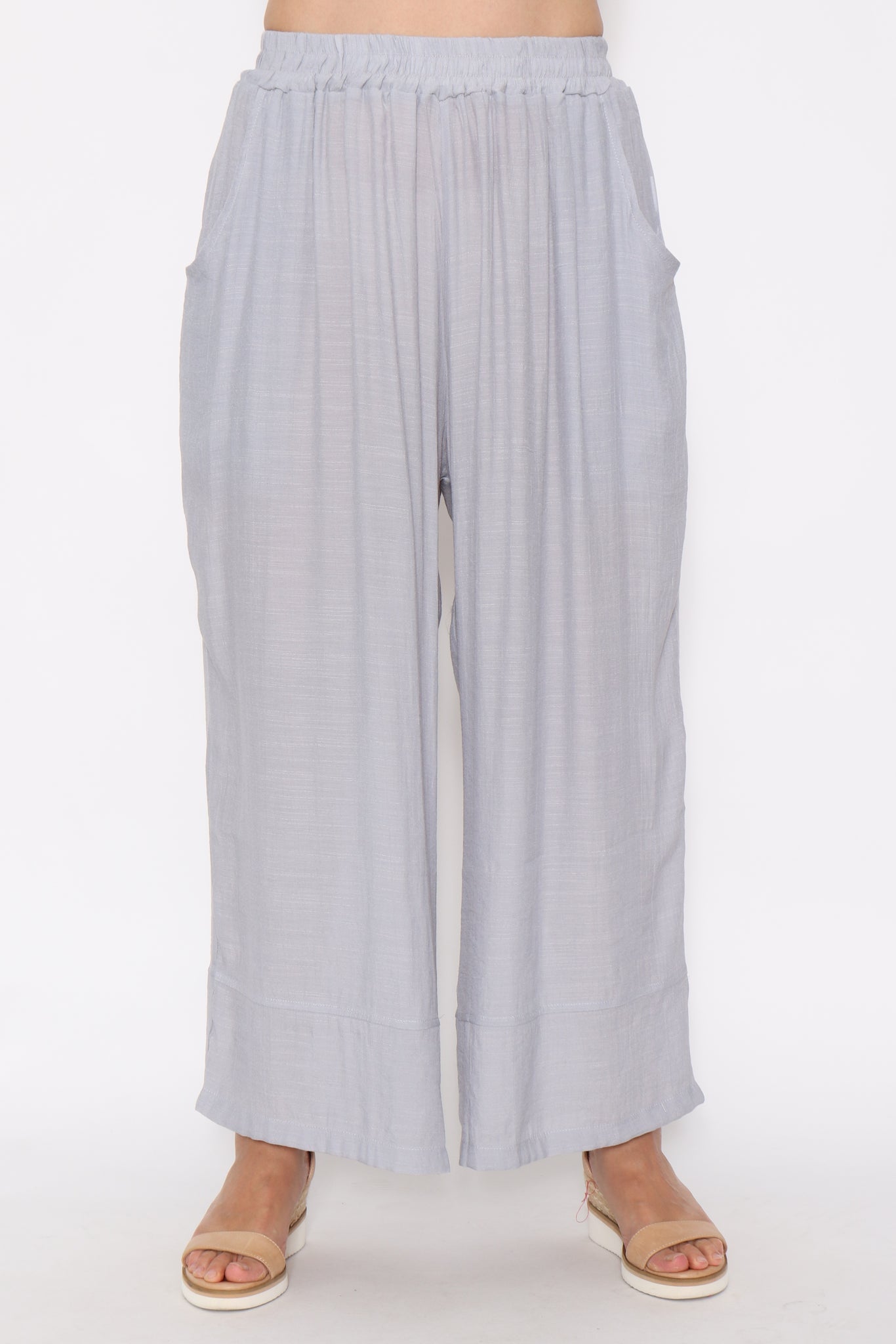 The elastic waistband ensures an easy, flexible fit, while the wide-leg silhouette creates beautiful movement and all-day comfort. Finished with practical side pockets, these pants are as functional as they are stylish.