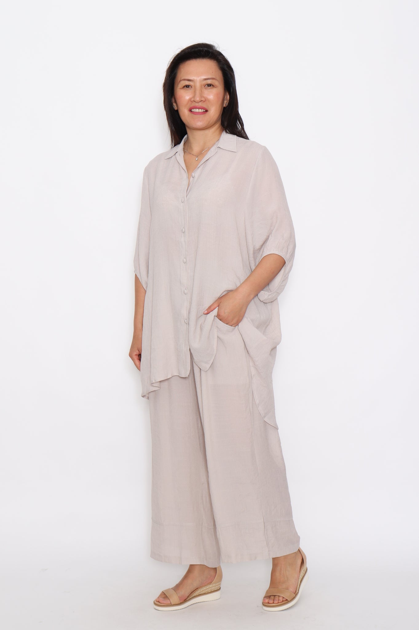 Elevate your everyday comfort with these effortlessly chic wide-leg pants. Crafted from a lightweight, breathable fabric, these pants feature a relaxed fit with a soft drape that moves gracefully with you. The elastic waistband offers a snug yet flexible fit, making them perfect for all-day wear. Designed with deep side pockets for added convenience, these pants combine style and practicality.