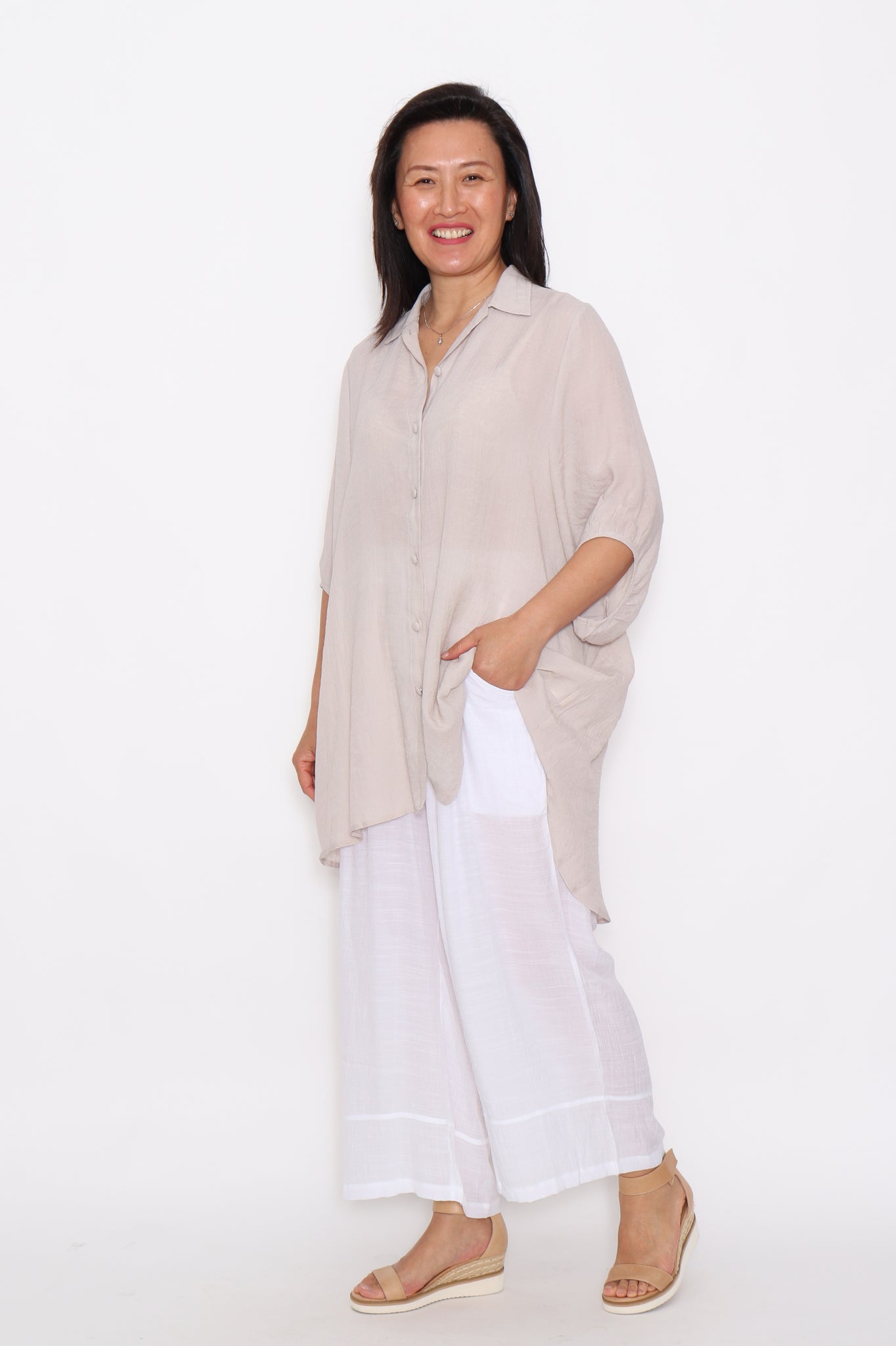 The elastic waistband with a drawstring ensures a comfortable and adjustable fit, while side pockets add practicality. The loose, flowy silhouette drapes beautifully, making these pants perfect for casual days, lounging, or travel.